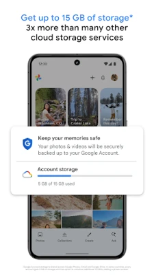 உங்கள் ஒவ்வொரு நினைவையும் பொக்கிஷமாகப் பாதுகாக்க, Google Photos ஒரு இணையற்ற துணையாக விளங்குகிறது. ஒவ்வொரு Google கணக்குடனும் இலவசமாக வழங்கப்படும் 15 GB கிளவுட் சேமிப்பகம்*, மற்ற பல சேவைகளை விட மூன்று மடங்கு அதிக இடவசதியை அளிக்கிறது. இதன் மூலம், உங்கள் அன்பான புகைப்படங்களையும் வீடியோக்களையும் அனைத்து சாதனங்களிலிருந்தும் தானாகவே பதிவேற்றி, Google-ன் மேம்பட்ட பாதுகாப்பு உள்கட்டமைப்புடன் என்றும் பாதுகாப்பாக வைத்திருக்கலாம். உங்கள் நினைவுகள் எப்போதுமே பத்திரமாக, உங்களுக்கு அருகிலேயே இருப்பதை Google Photos உறுதி செய்கிறது.