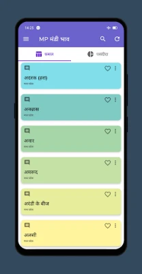 மத்திய பிரதேச மாநில விவசாயிகளின் வாழ்வில் ஒரு புதிய புரட்சி! `Madhya Pradesh Market Yard / MP Mandi Bhav / MP APMC app` உங்கள் கைகளிலேயே சந்தை விலைத் தகவல்களைக் கொண்டுவருகிறது. சந்தைக்குச் செல்லாமல், உங்கள் வீட்டிலிருந்தபடியே உங்களுக்கு விருப்பமான வேளாண் சந்தைகளின் (மண்டி / APMC) சமீபத்திய விலை நிலவரங்களை அறிந்து கொள்ளலாம். பல்வேறு சந்தைகளில் உங்கள் விளைபொருட்களுக்கான சிறந்த விலையை ஒப்பிட்டு, சரியான நேரத்தில் சரியான முடிவுகளை எடுக்க இது உதவுகிறது. இதன் மூலம் உங்கள் கடின உழைப்புக்குரிய முழு மதிப்பையும் பெறலாம்.